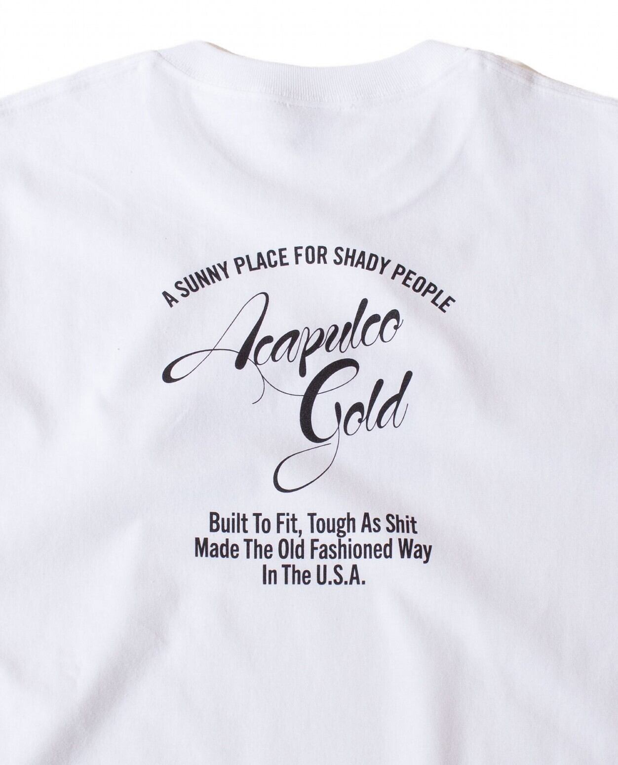 メキシコ産高級大麻"Acapluco Gold"をブランドネームの由来とし、ヒップホップ、ロック、ブラックムービーなどのネタ使いやパロディ等のユーモアのあるデザインワークで世界中のストリートを席巻、アメリカやカナダの工場にも精通し、 素材や縫製等の品質にもこだわりを持ったブランドです。