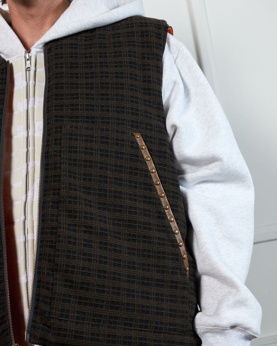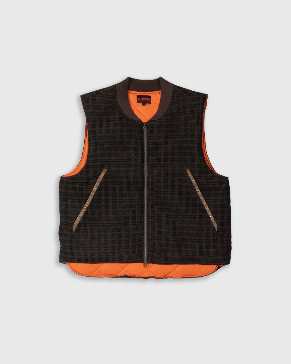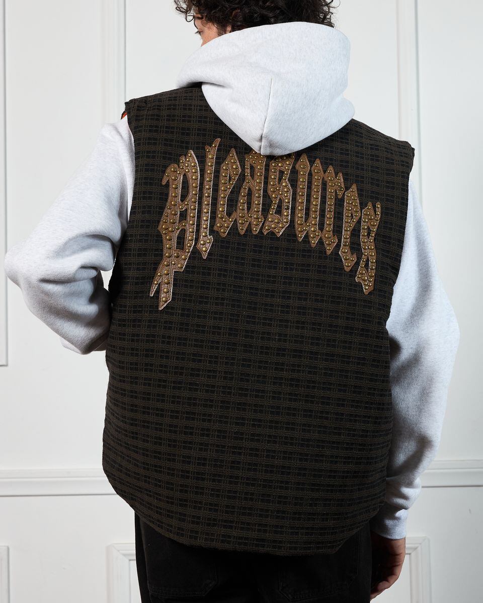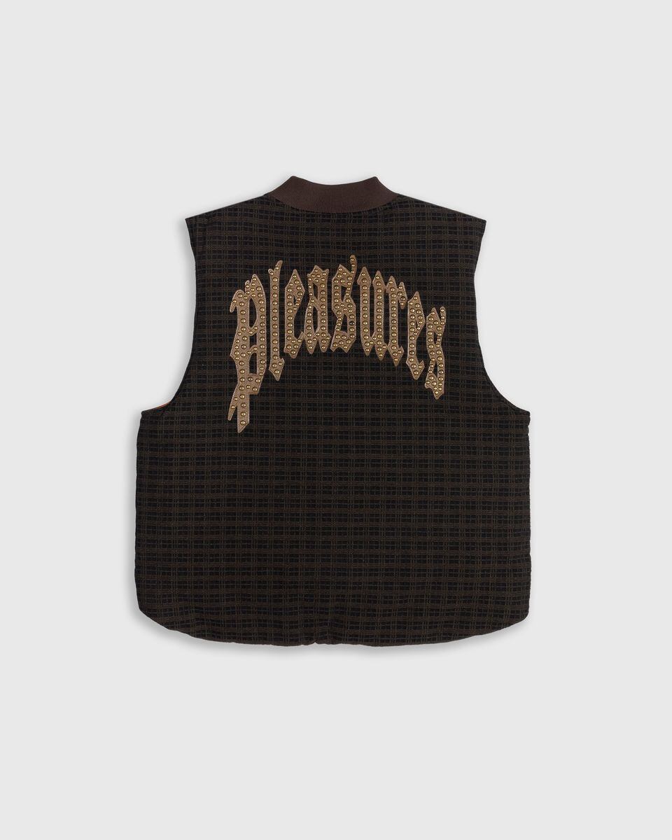 【PLEASURES/プレジャーズ】HORNS DENIM VEST ベスト / BROWN PLAID / HOL25-13808