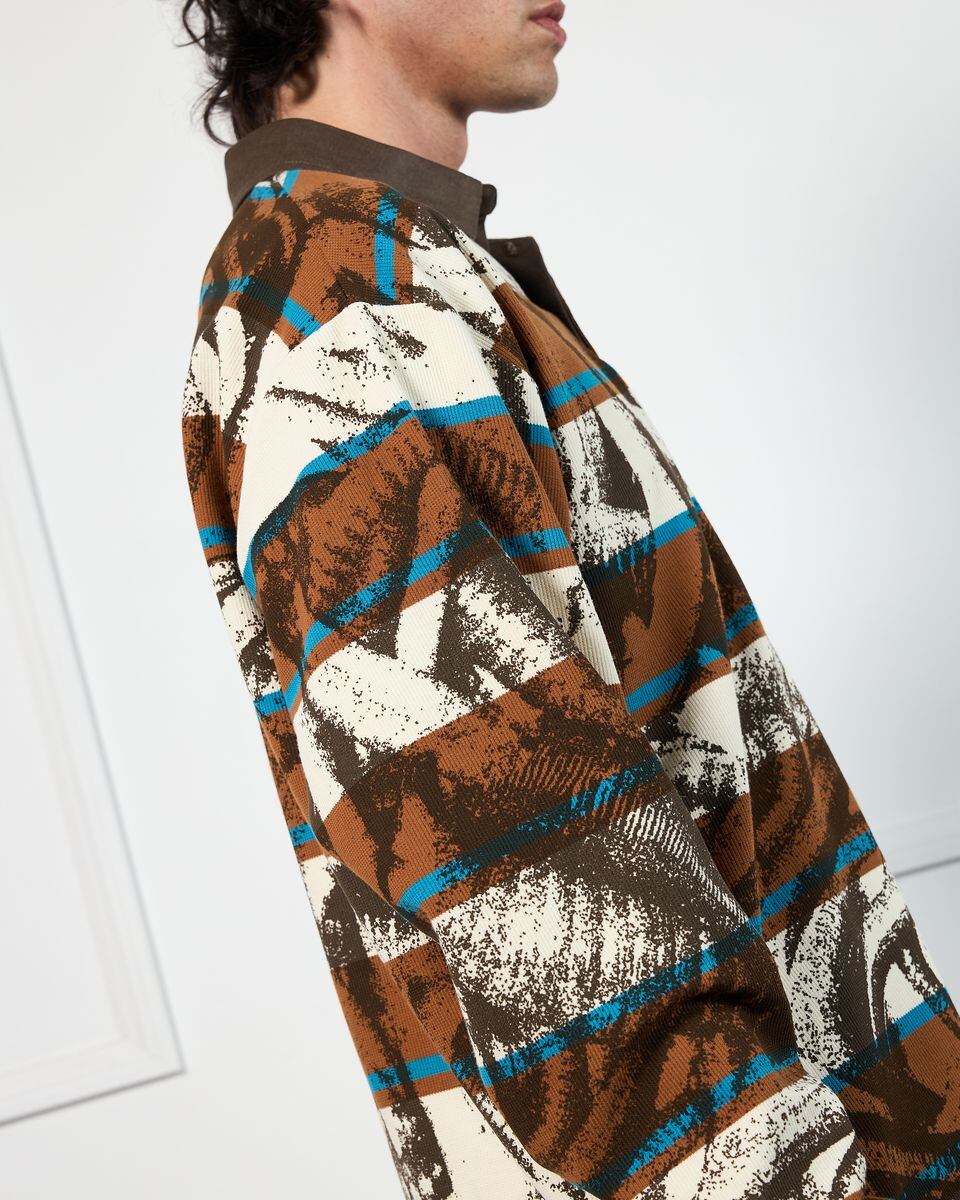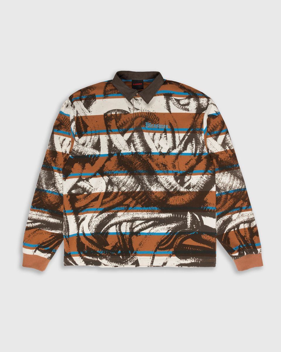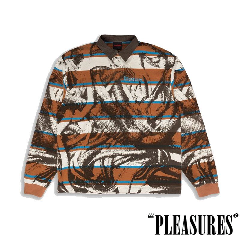 【PLEASURES/プレジャーズ】WORMS RUGBY LONG SLEEVE POLO ポロシャツ / BROWN STRIPE / HOL25-13815