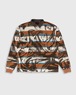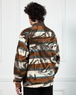 全面に施された個性的なプリントがアクセントとなり、存在感ある一枚に仕上がっています。