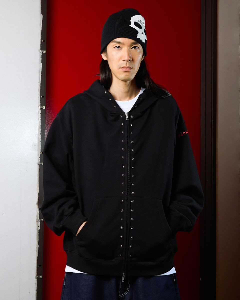 【PLEASURES/プレジャーズ×ZERO SKATEBOARDS】DANE STUDDED HOODIE パーカー / BLACK / ZERO-13920