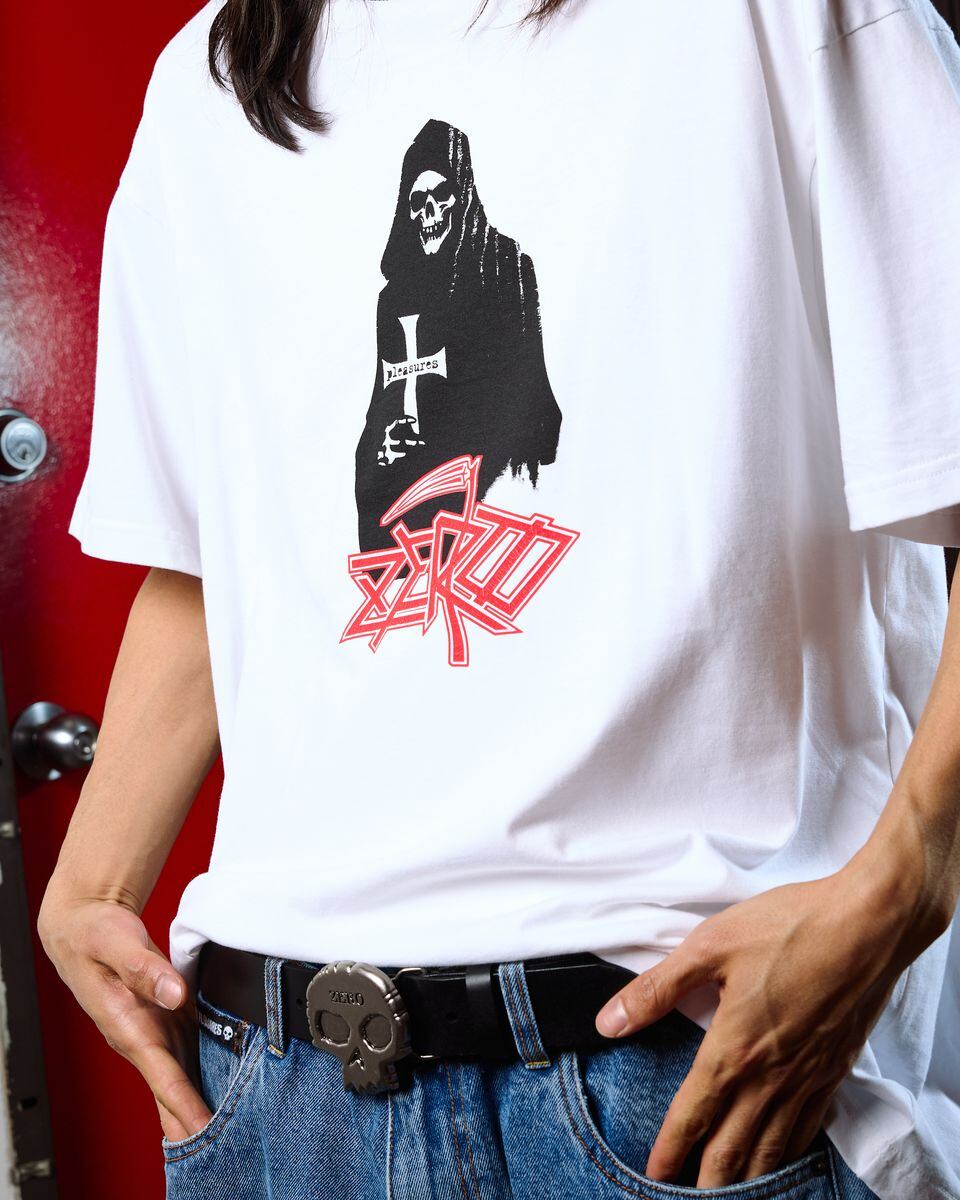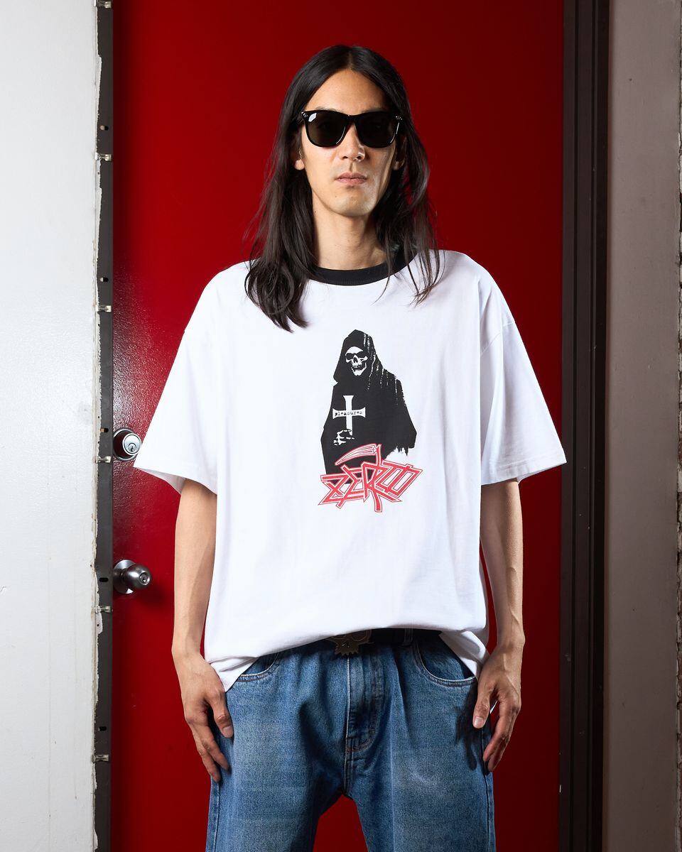【PLEASURES/プレジャーズ×ZERO SKATEBOARDS】REAPER RINGER Tシャツ / WHITE / ZERO-13928