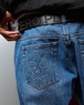 シンプルなブラックボディにスカルのバックルとスタッズを配置したベルトです。