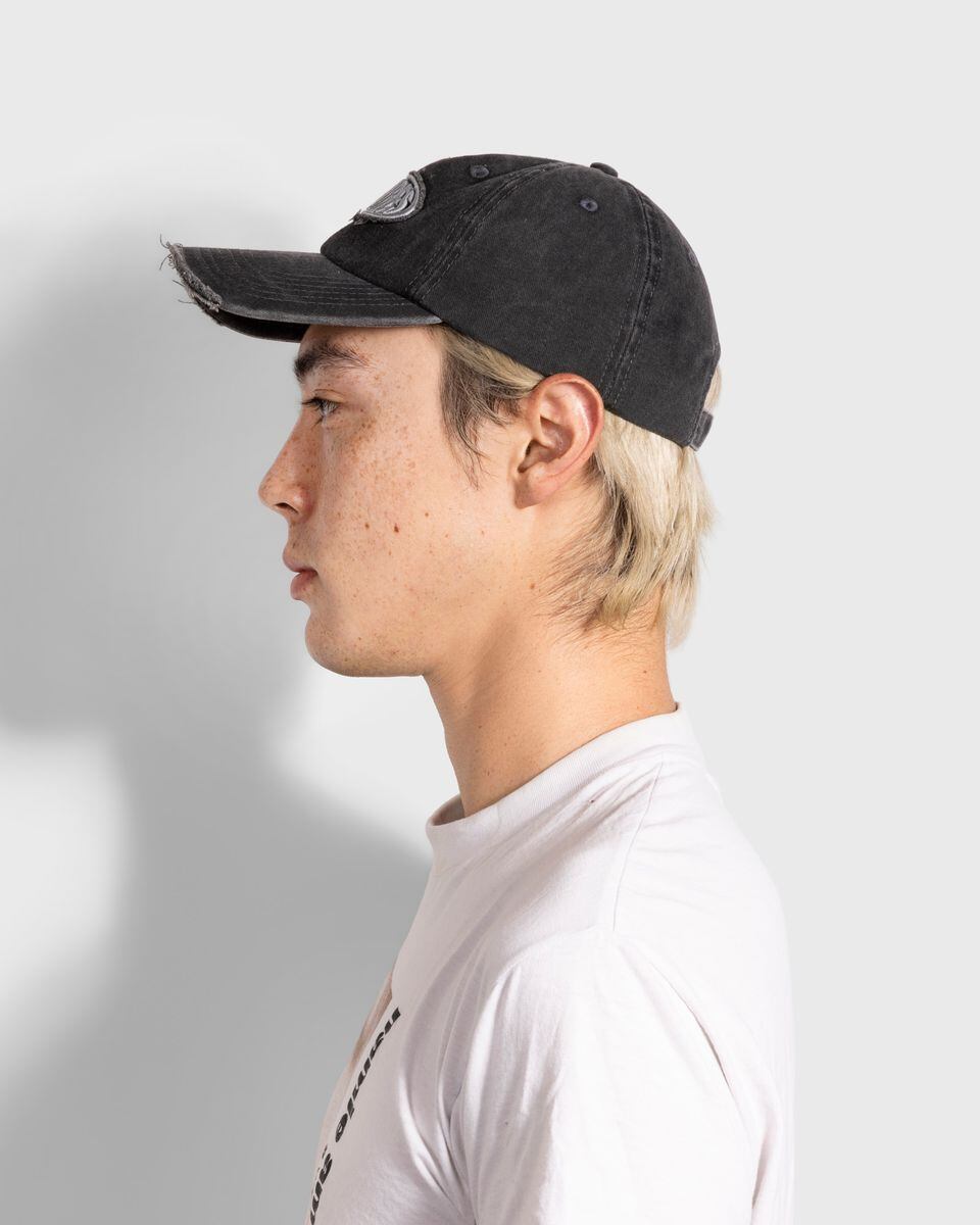 立体感のあるロゴ刺繍とダメージ加工がデザインが特徴のキャップです。