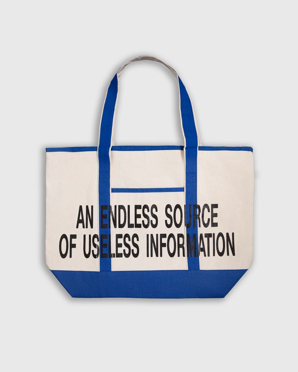 ”AN ENDLESS SOURCE OF USELESS INFORMATION”無駄な情報が延々と出てくる存在というジョーク的な言葉がプリントされたデイリーユースに最適なトートです。