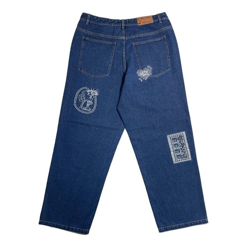 随所に "DOILY" グラフィックが刺繍にてデザインされており、ゆったりしたバギータイプのデニムパンツです。