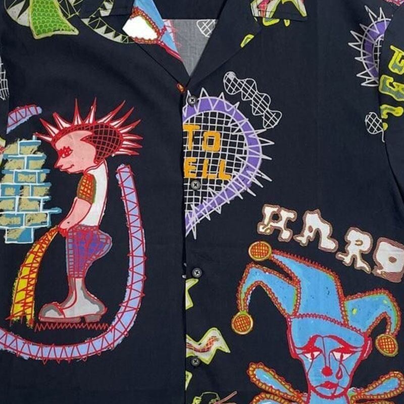 ブラックのナイロン素材に "DOILY" グラフィックがオールオーバープリントされたオリジナル・アロハシャツです。