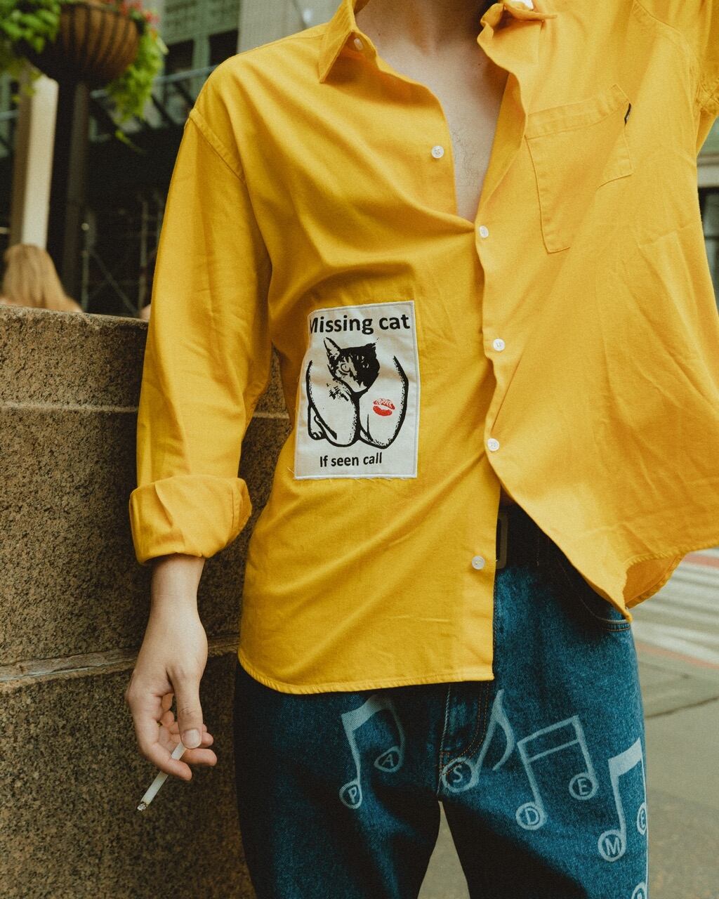 【PAS DE MER/パドゥメ】MISSING CAT SHIRT 長袖シャツ / MUSTARD / AW23-11849