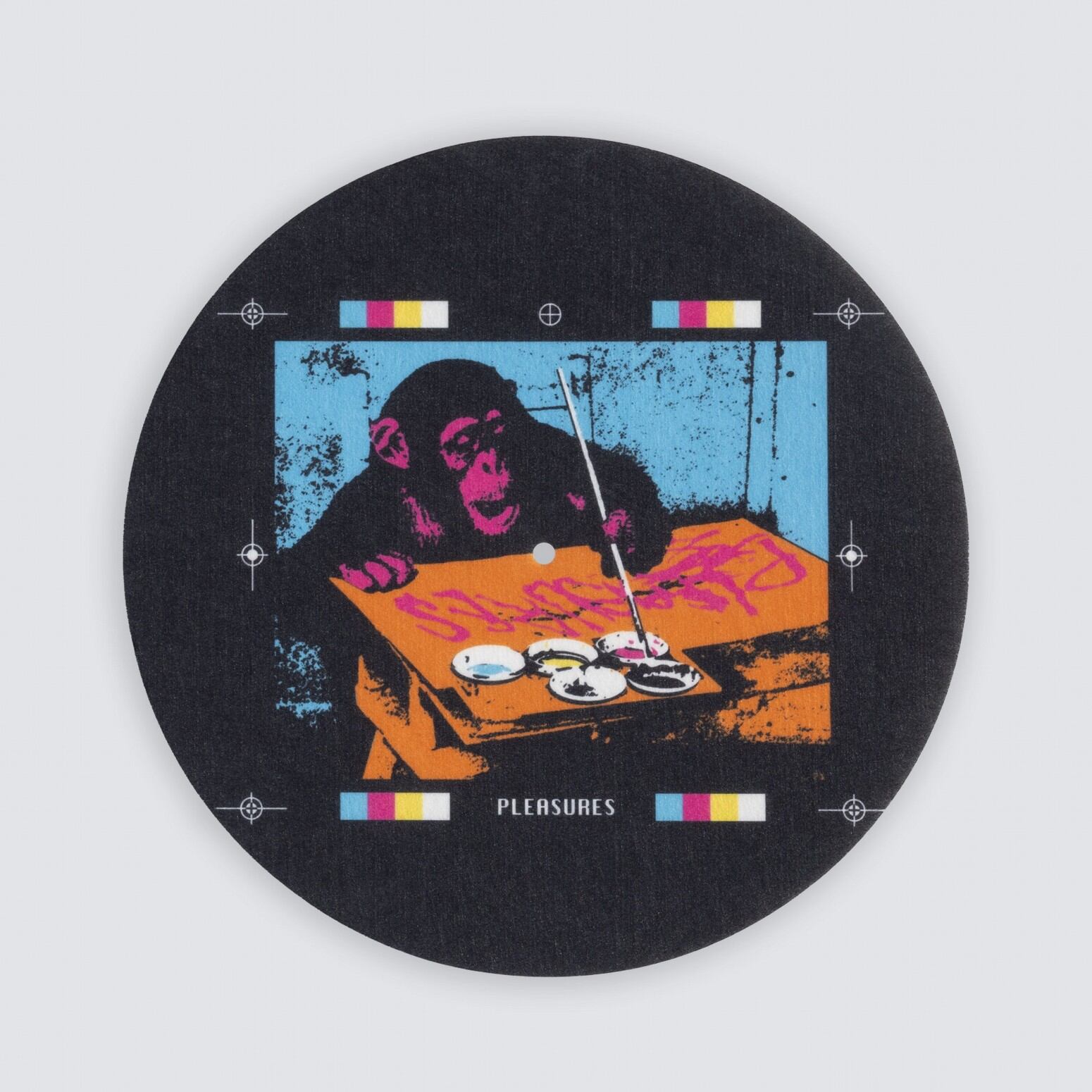 100%ウール製、CMYKカラーでデザインされたサルが特徴的なDJターンテーブル用のスリップマットのセットです。