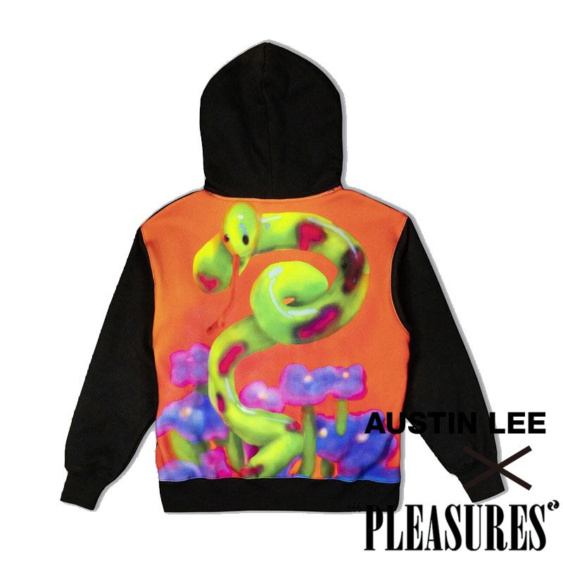 【PLEASURES/プレジャーズ×AUSTIN LEE】WET SNAKE HOODIE パーカー / BLACK / AUSTIN LEE-12650 セール対象外